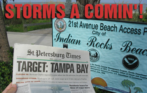 Cocoahigh65.com will add links and original content continuously, and there are a bunch of already up and running sites that feature a wealth of class, event, and generic info. Bob Mayo, for instance, devotes a lot of time and effort to his site, linking many of the other CHS related online locations. He's got a ton of stuff up now and has just added a chat room. Stay tuned to cocoahigh65.com and stay in touch. There's more on the way! Hurricane Charley: Ali Steinbach ('64) made it through relatively unscathed, and that's great news. Check the Hurricane Page for my August 13th, Friday morning impressions, photographed when Tampa was still expected to be the target and before Charley turned into Punta Gorda. We were very lucky to have escaped the destruction: Here's what Ali reported...